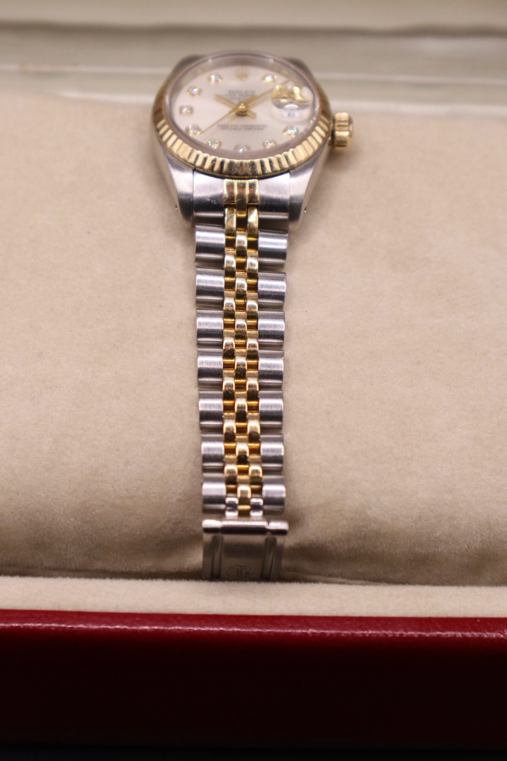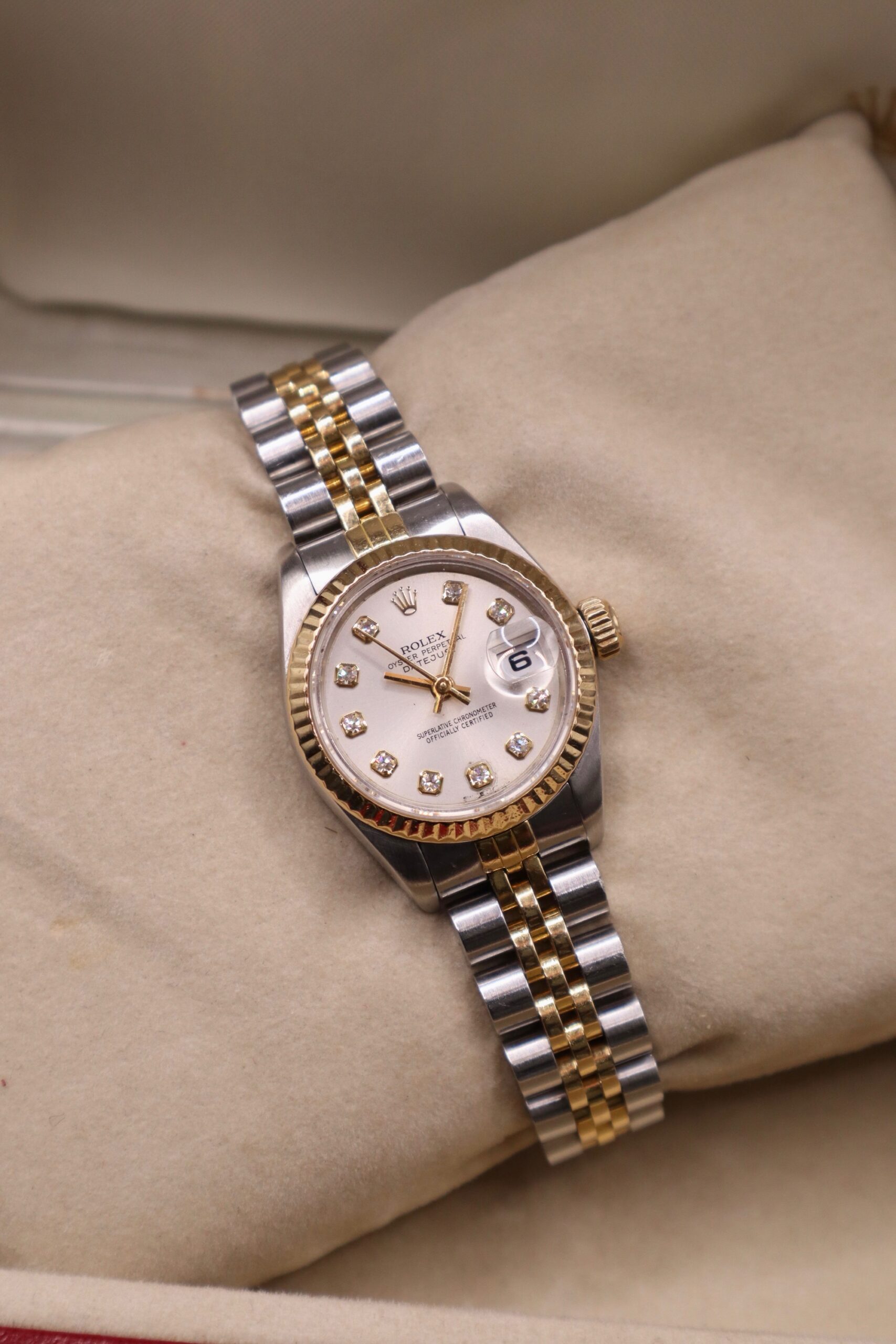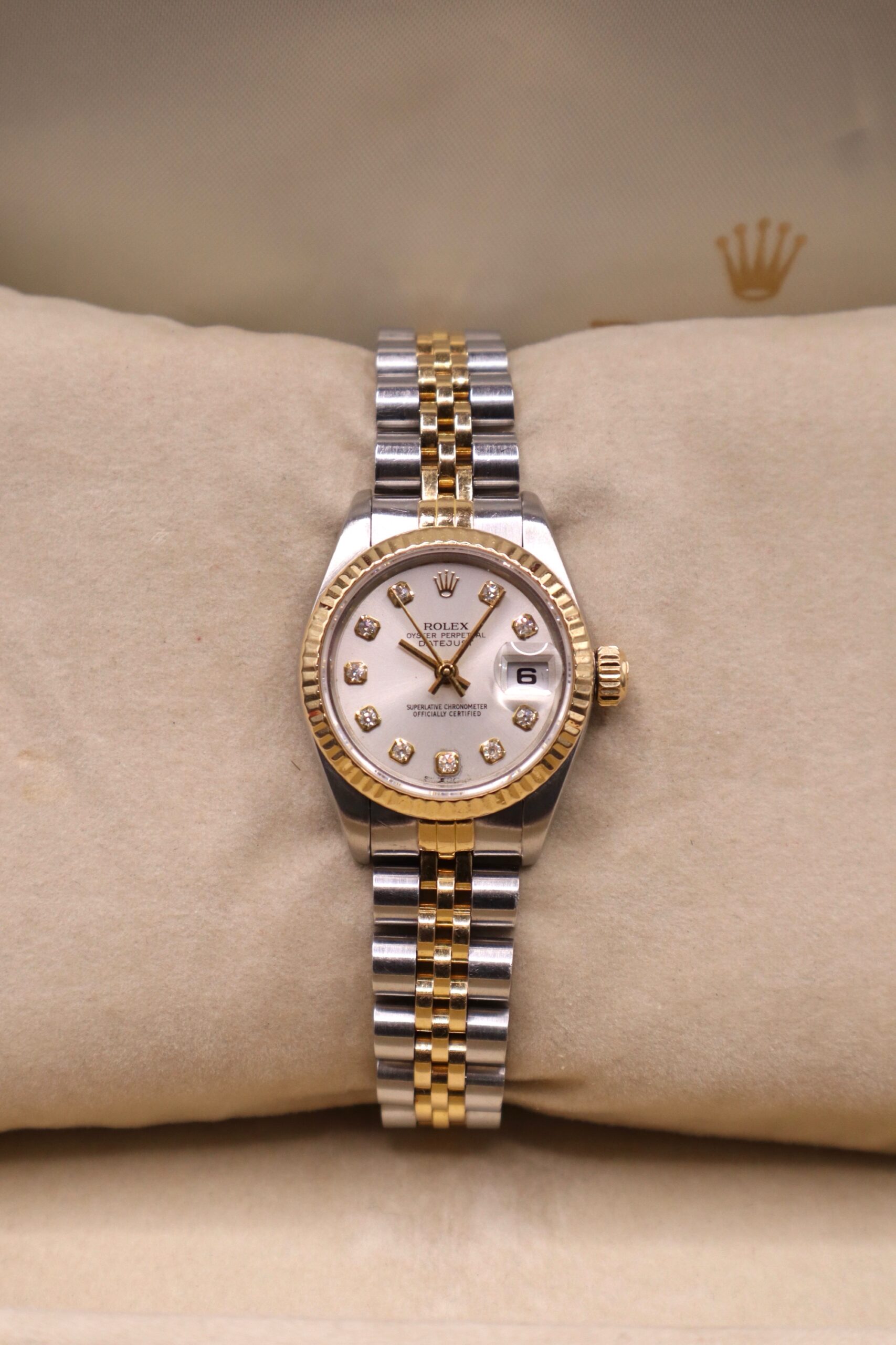 Here at Watch This Source we have this women’s Rolex Datejust Champagne Diamond Dial 26mm available to purchase.